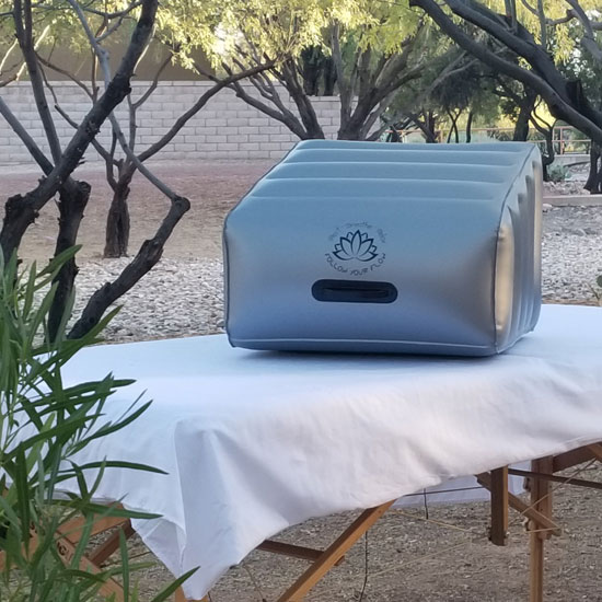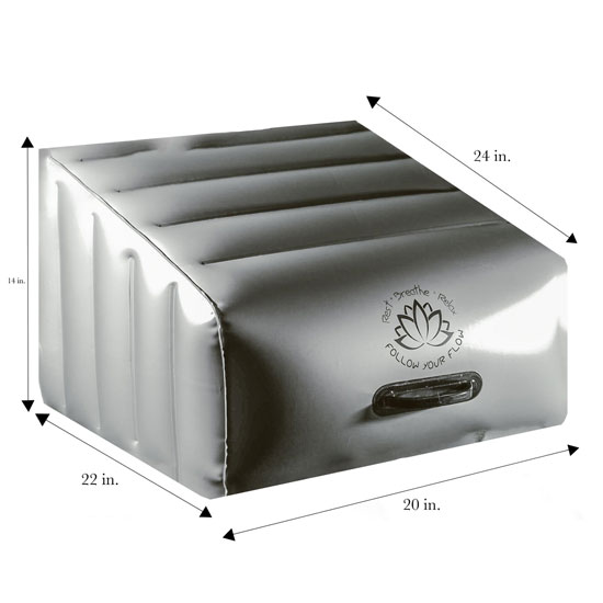 The Follow Your Flow inflatable bolster is your “at home” therapy bolster that is designed to be used under your legs while lying on your back. It can be used in conjunction with heat or cold applications to the lower back, hip, knee, or ankle. It is durable and has withstood daily use in a busy outpatient orthopedic clinic for approximately 6 months without loss of air or puncture.